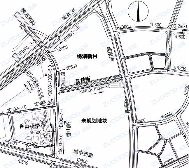 这两条道路都呈T字型交叉状,通车之后将大幅改善和提升香山路、县前街市政配套的承载能力,进一步方便了学生的上下学、也为居民的出行提供便利。